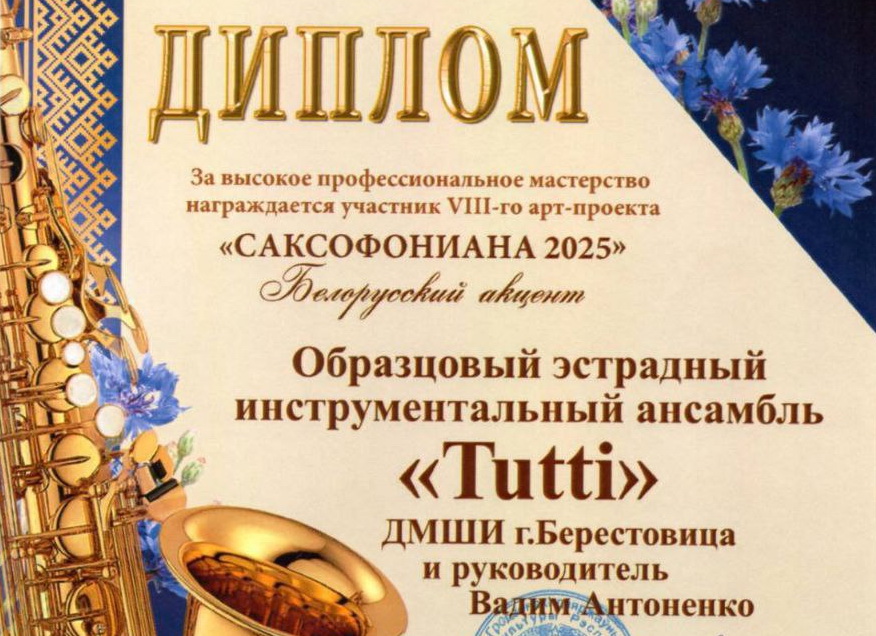 На сцене Гродненского государственного колледжа искусств состоялся VII арт-проект «Саксофониана-2025», который стал настоящим праздником музыкального искусства. Творческий фестиваль открыл свои двери для талантливых музыкантов. Образцовый эстрадно-инструментальный ансамбль «Tutti» Берестовицкой детской школы искусств под руководством Вадима Антоненко принял участие в проекте и продемонстрировал высокий уровень исполнительского мастерства.