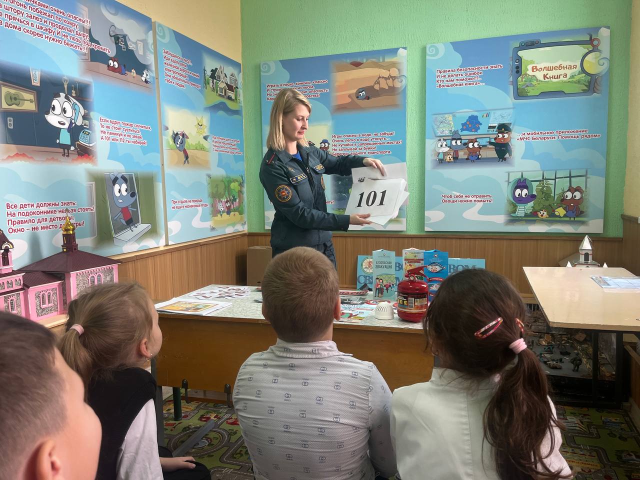 Детям напомнили номера телефонов экстренных служб и научили, как правильно вызвать помощь в случае опасности.