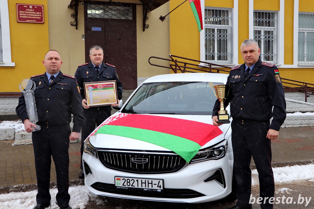 К слову, кроме переходящего кубка сотрудники нашего РОВД получили в подарок новенький служебный автомобиль «Geely», который пополнил автопарк райотдела.