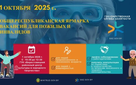 Министерство труда и социальной защиты опубликовало график ярмарок вакансий для пожилых и инвалидов по всей стране, сообщает БЕЛТА. Так, в Гродно ярмарки вакансий пройдут 29 сентября и 2 октября, в Могилеве — 29 сентября и 3 октября, в Витебске и Гомеле — 1-2 октября, в Минске и Бресте — 2-3 октября. Мероприятия состоятся также в […]