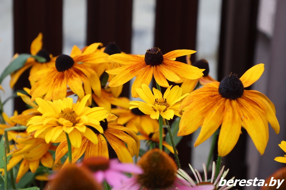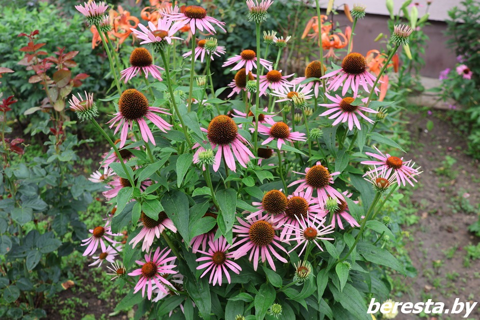 Свободного метра земли на участке практически не найти, все засажено. Цветник пестрит красками и благоухает, напоминая сказочное царство. Здесь преобладают многолетние цветы: флоксы, лилии, эхинацеи, рудбекии, гладиолусы и многие другие.
