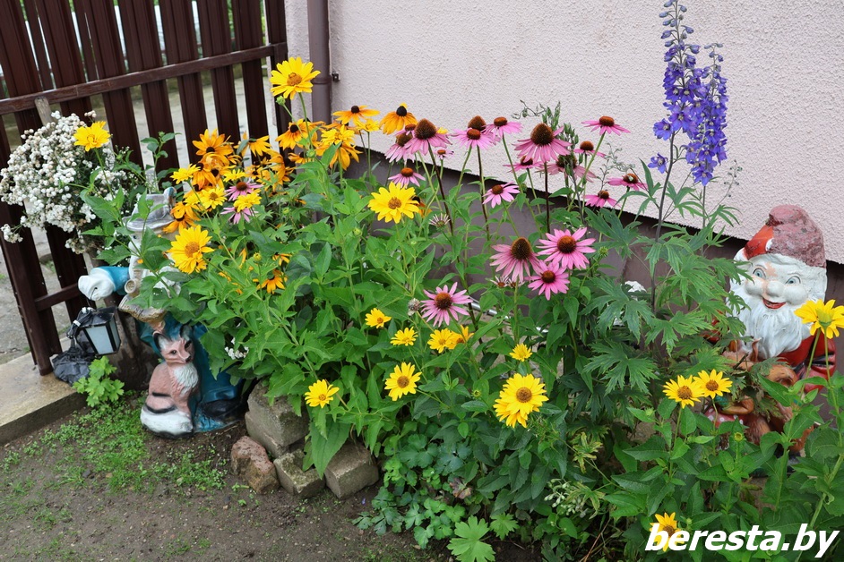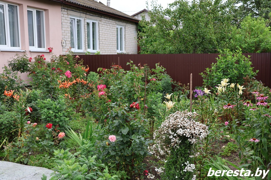 Если уж говорить о том, что двор утопает в цветах, так это о дворе берестовичанки Янины Белевич. Глядя на все разнообразие и изобилие растений на ее участке невозможно поверить, что это дело рук работающей женщины, которая прекрасно все успевает и совмещает и работу, и ведение хозяйства.