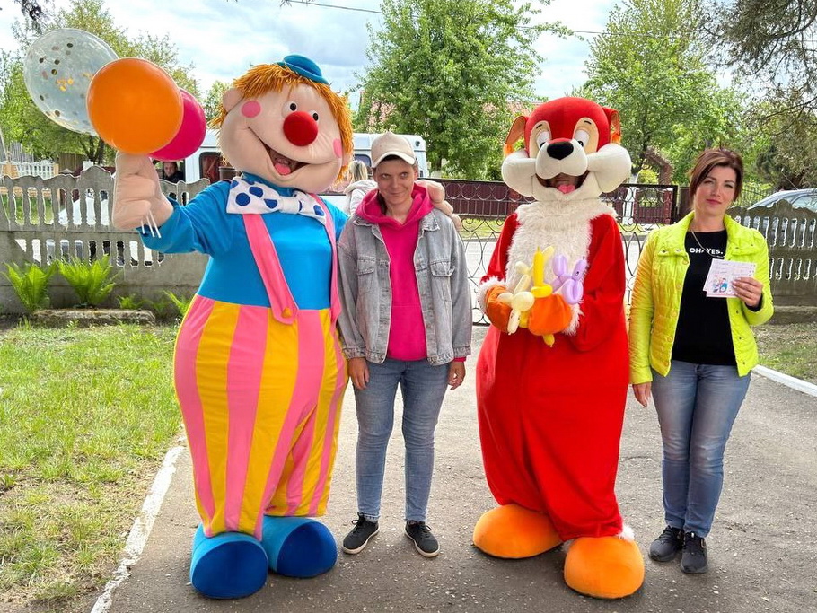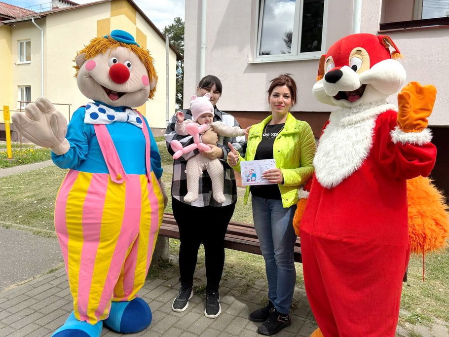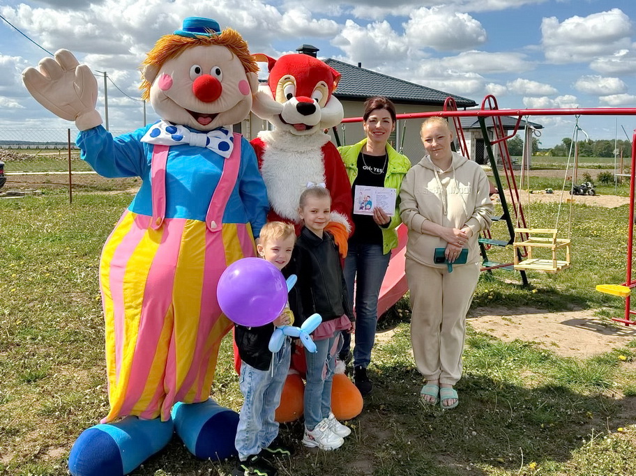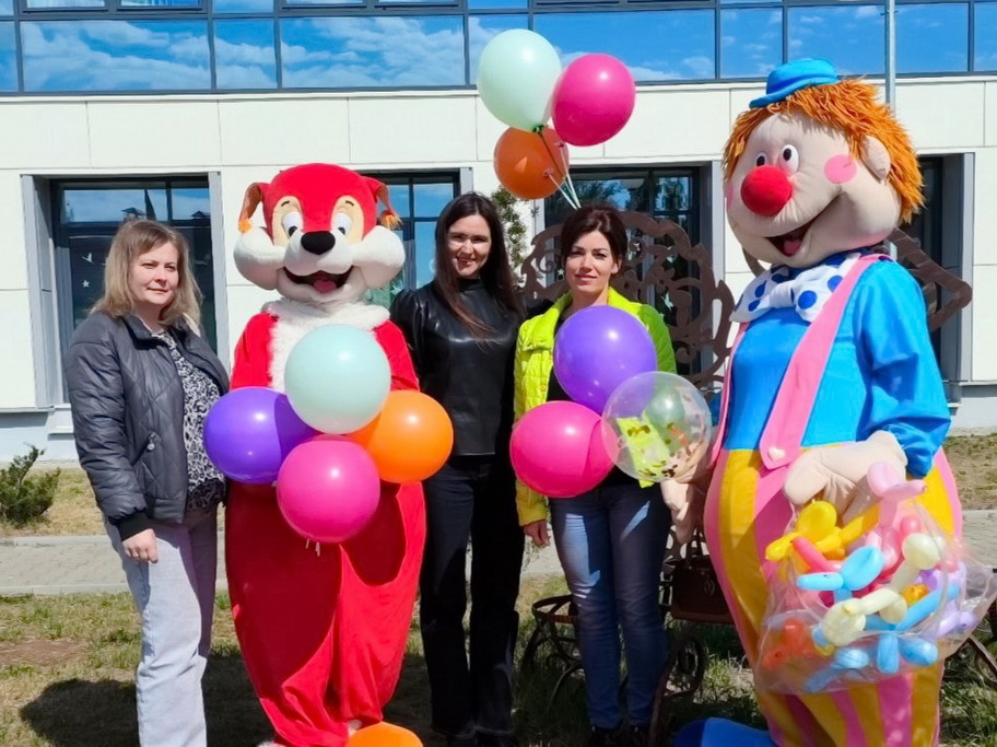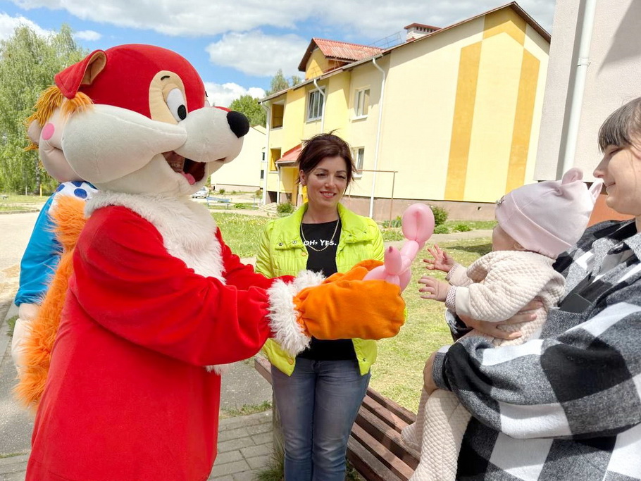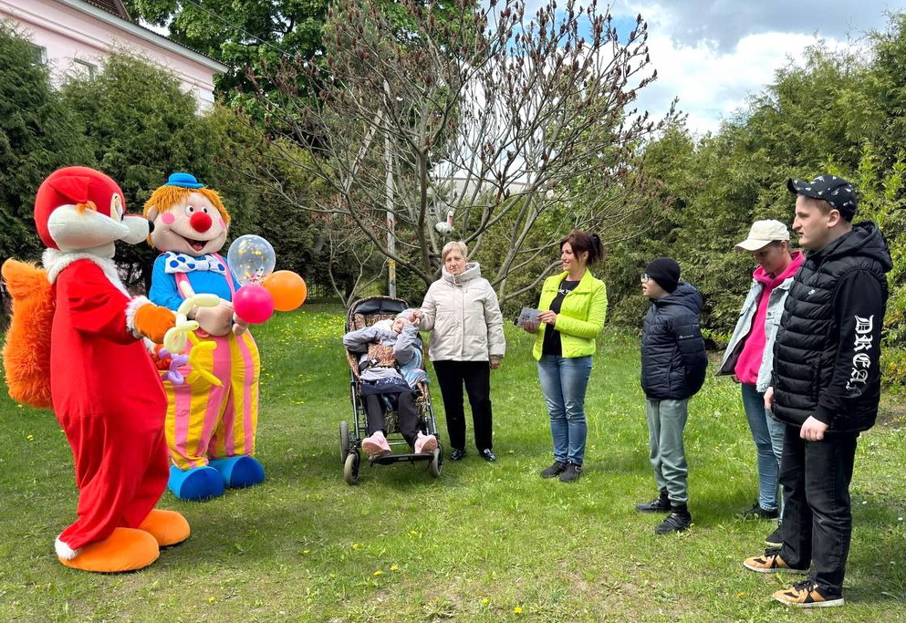 Организаторы постарались создать для виновников торжества по-настоящему праздничную атмосферу. К детям дошкольного возраста и учащимся ГУО «Центр коррекционно-развивающего обучения и реабилитации г. п. Б. Берестовица» пришли в гости ростовые куклы-Клоун Клепа и Белочка Кисточка, которые принесли с собой яркие шарики и открытки, даря детям радость и улыбки.