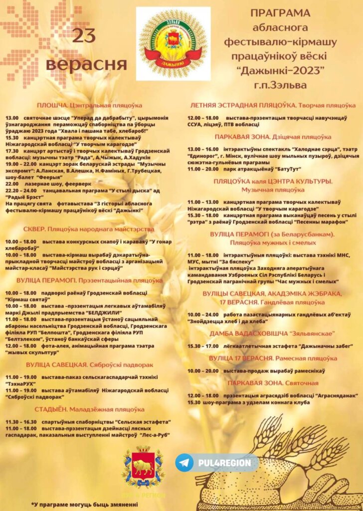 «Дажынкі-2023»: программа фестиваля-ярмарки тружеников села в г.п Зельва