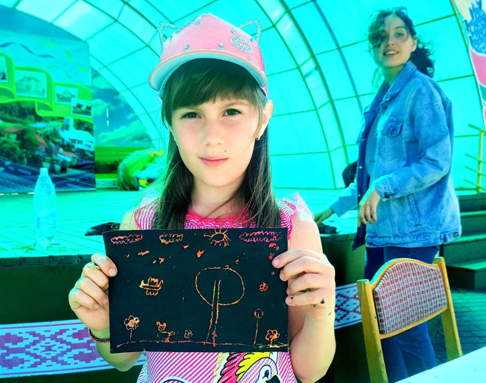 В рамках деятельности интерактивной молодежной площадки на территории летнего амфитеатра состоялся мастер-класс для детей по изготовлению гравюры на картоне. Не передать словами детский восторг, когда при помощи нехитрых движений специальным перышком по загрунтованному полотну из штрихов постепенно проявляется картина, которую ребенок создал своими руками.