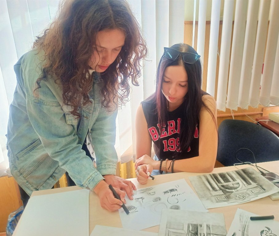 Был проведен также мастер-класс по обучению основам графики, в частности, работе с углем.