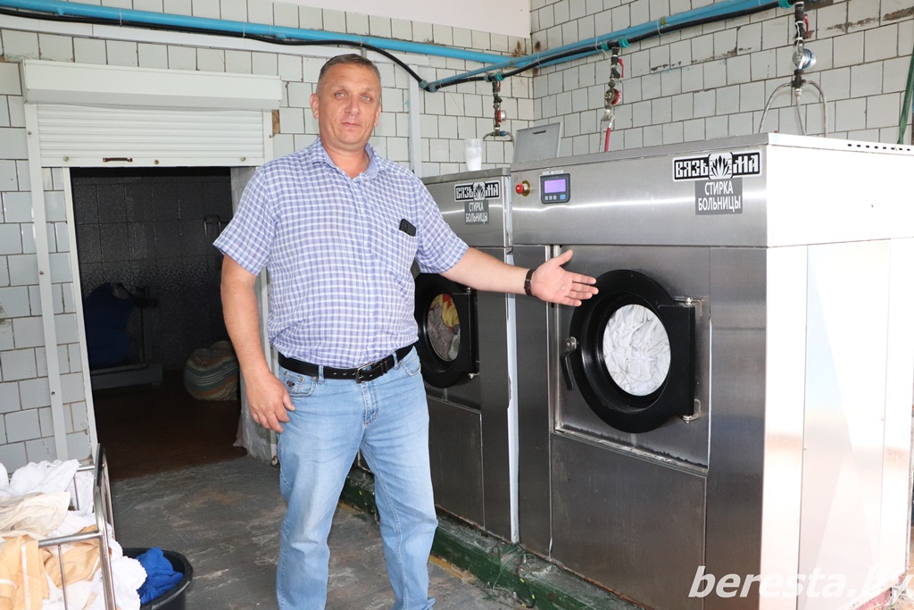 – Здесь стирается белье, поступающее из всех пограничных застав наших двух районов, школ и детских садов, центральной районной больницы, детского оздоровительного лагеря «Берестовицкий», – уточняет Александр Козловский. – В месяц в прачечной могут стирать до 5 тонн белья, раньше у нас в среднем 2-3 тонны в месяц выходило, а когда заключили договор с гостиничным комплексом «Жарковщина», расположенном в Национальном парке «Беловежская пуща», объемы заметно увеличились.