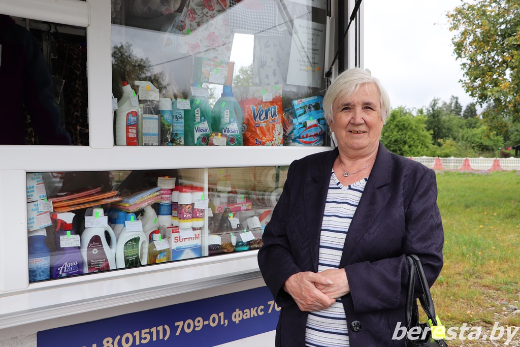– Это очень удобно: бывает, порошок стиральный закончился или простыня понадобилась – здесь все можно купить, чтобы не ехать в магазин, – отмечает Валентина Белоусова, жительница аг. Большие Эйсмонты. – Считаю, что мобильный пункт оказания бытовых услуг – сервис важный и нужный в таких небольших населенных пунктах.