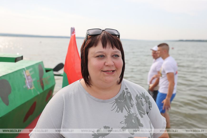 О своей задумке рассказывают аграрии Дятловского района, которые не впервые на заплыве. «Все согласно тематике — мы решили сделать самолет. Воплощали задумку наши строители. Самолет сделан из фанеры и бочек. На его создание ушло около недели. Все вместе, сплоченно подошли к подготовке к участию в заплыве. Спасибо нашему руководителю, что всегда поддерживает наши идеи, и за то, что в горячую такую пору, конечно, нас отпустил поучаствовать. Для нас важно принять участие в этом мероприятии, ведь мы патриоты своей страны», — поделилась заместитель директора по идеологической работе ОАО «Гранит-Агро» Екатерина Дубешко, команда которой уже принимала участие в соревнованиях и даже завоевывала Гран-при.