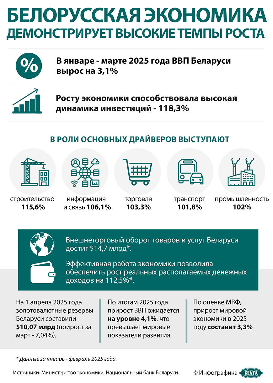 Беларусь сохраняет устойчивые темпы роста экономики. Об этом говорится в еженедельном макрообзоре Евразийского банка развития (ЕАБР), сообщает БЕЛТА.