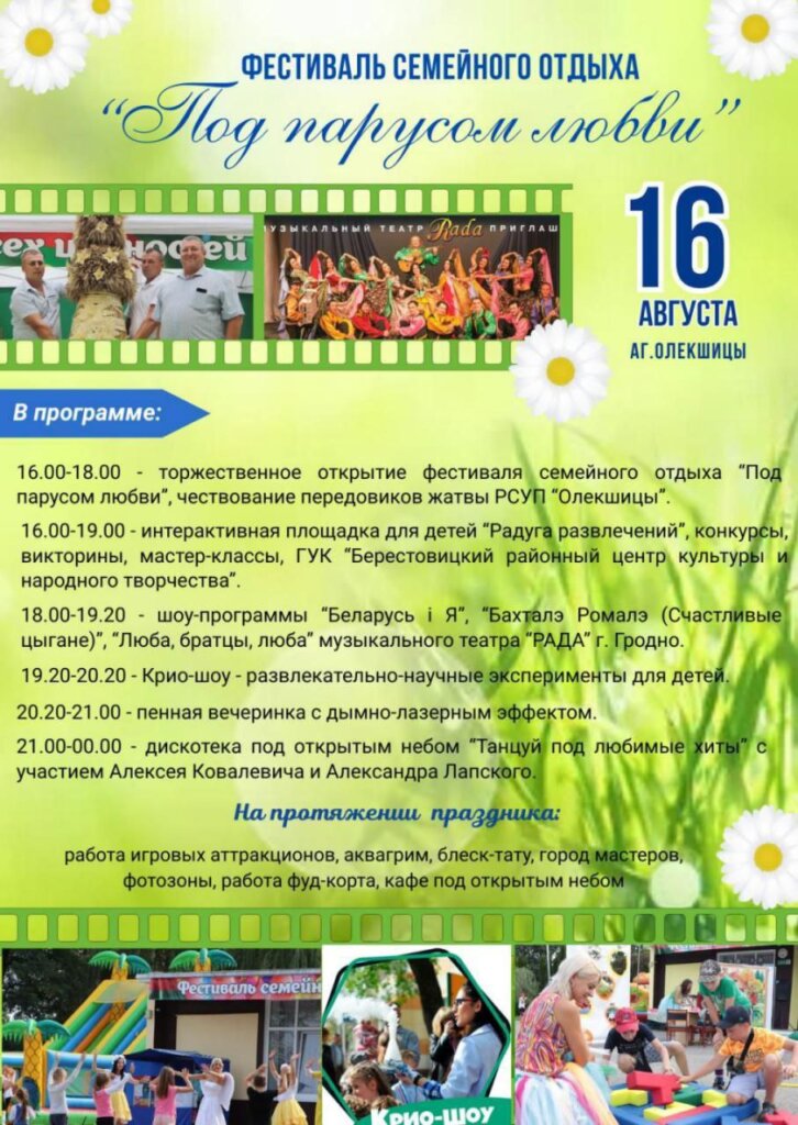 16 августа в агрогородке Олекшицы пройдет фестиваль семейного отдыха «Под парусом любви».