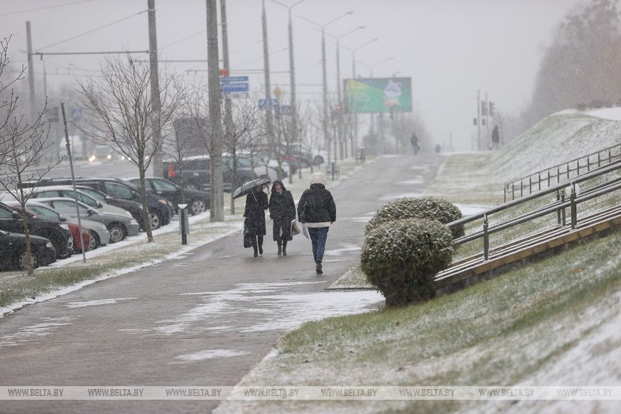 В Гродно выпал снег. На большей части страны сегодня пройдут кратковременные осадки: снег, мокрый снег, по западу Беларуси с дождем.
