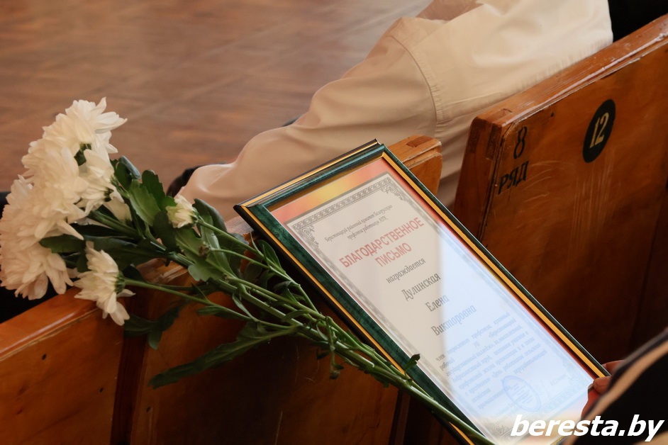 Юлия Николаевна вручила Грамоты Берестовицкого государственного колледжа мастеру производственного обучения Максиму Портному, кастелянше Ирине Лагоде-Вишневской, уборщику помещений Наталье Свейко и библиотекарю Жанне Котовой.