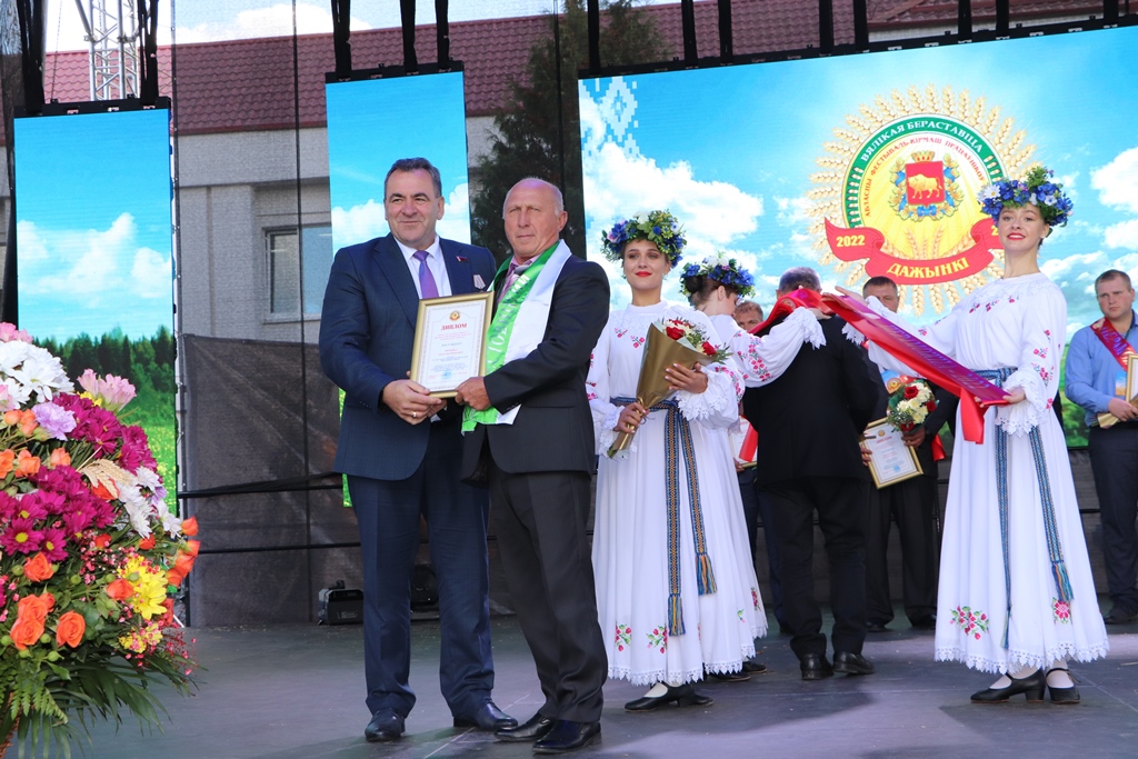 Сёння на галоўнай сцэне “Дажынак” у Вялікай Бераставіцы прайшла ўрачыстая цырымонія ўзнагароджання пераможцаў спаборніцтва па ўборцы ўраджаю 2022 года. Сярод перадавікоў жніва і прадстаўнікі Бераставіцкага раёна.