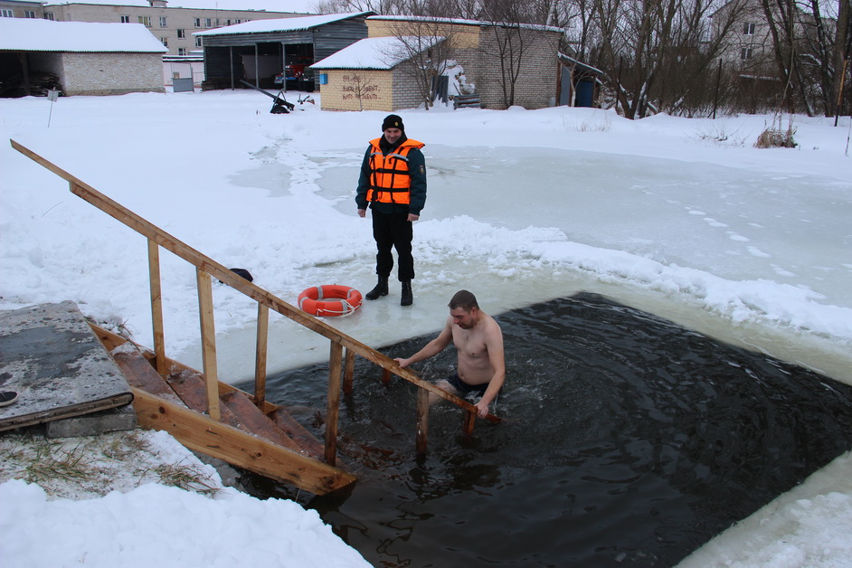 К назначенному времени к пожарной части начали подходить смельчаки, готовые войти и окунуться в ледяную воду, и их группы поддержки. Первыми в крещенскую воду вошли те, у кого есть опыт и необходимая подготовка, – наши доблестные спасатели, а вслед за ними – отважные жители Берестовицкого района.