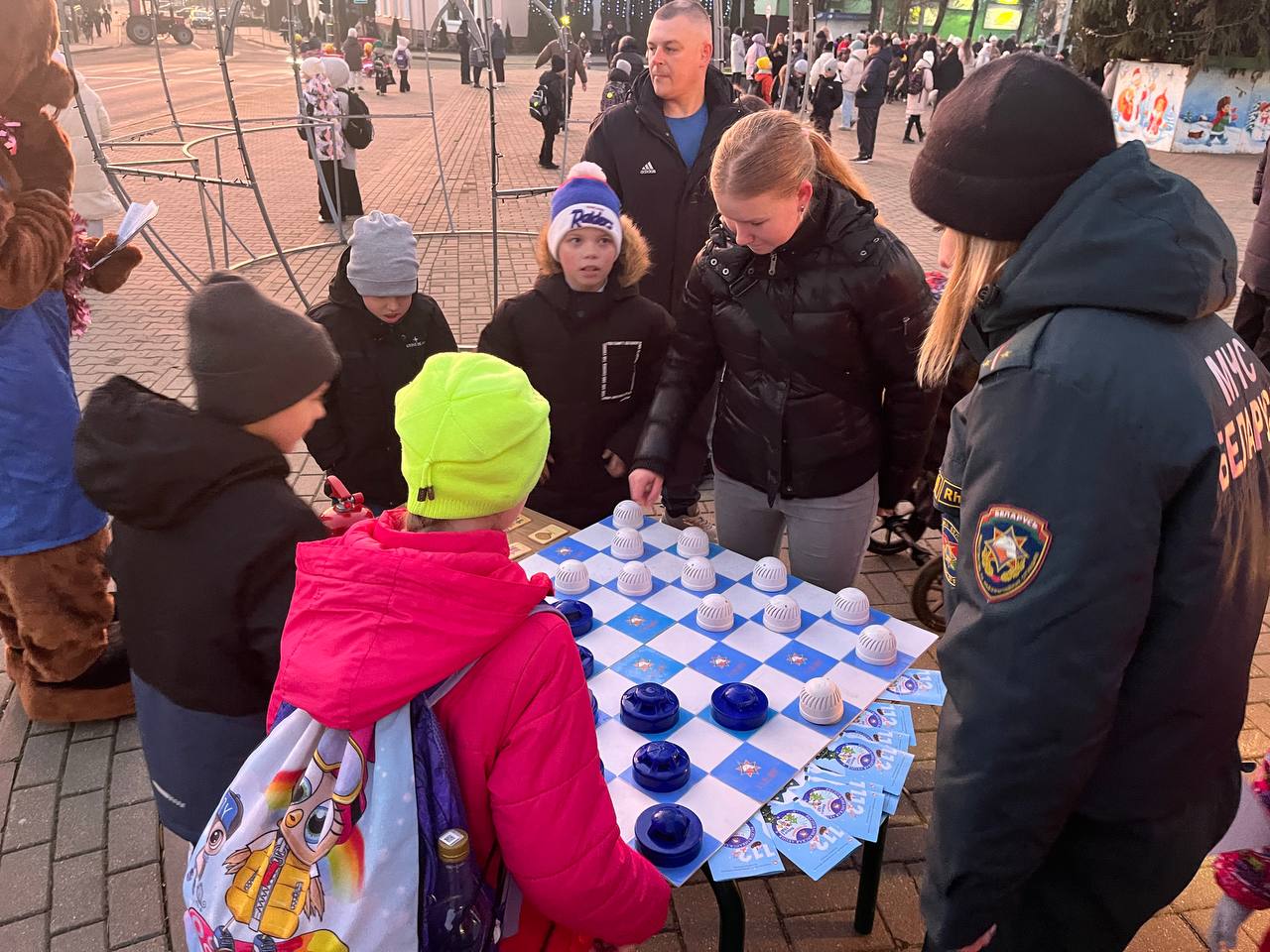 На празднике спасатели развернули интерактивную площадку, где в игровой форме, через «пожарные шашки», ситуационные задачи и викторины все желающие смогли освежить знания по правилам безопасности: от осторожного обращения с огнем до поведения на льду и использования пиротехники.