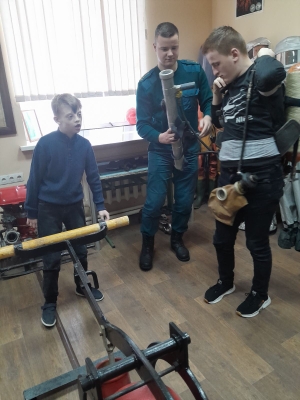 Учащиеся Центра коррекционно-развивающего обучения и реабилитации г.п. Большая Берестовица посетили Музей пожарной службы. Сотрудник Берестовицкого районного отдела по чрезвычайным ситуациям Вадим Юрьевич Метелица рассказал ребятам об истории пожарно-спасательной службы в районе. Ребята увидели средства пожаротушения, оборудование и снаряжение огнеборцев разных времен: различные виды пожарных топоров и багров, коллекцию пожарных касок, спецодежду спасателей разных лет. Особенно ребятам понравилась ручная водяная помпа, которая занимает центральное место в музее.