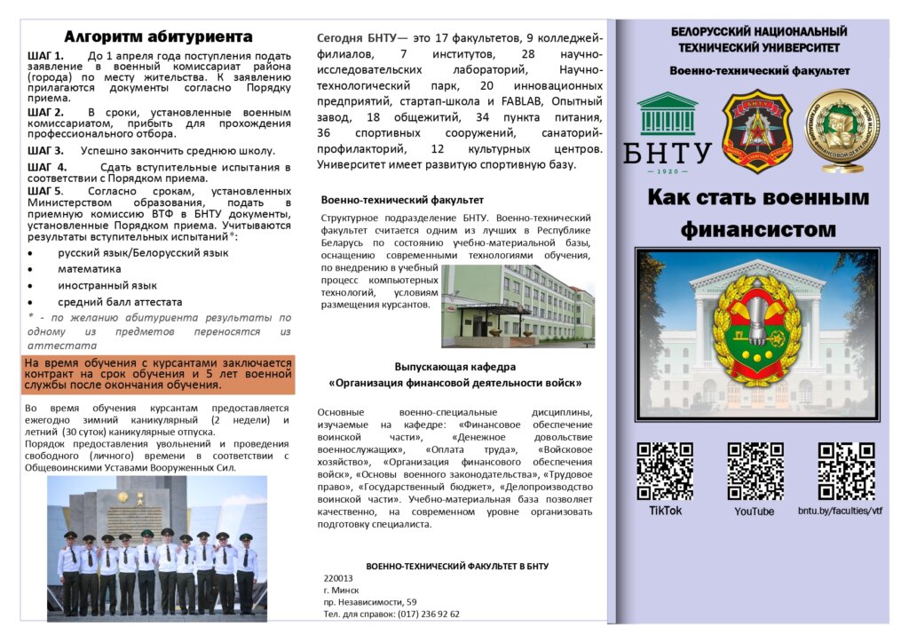 Для поступления на военно-технический факультет в Белорусском национальном техническом университете необходимо сделать следующие шаги: