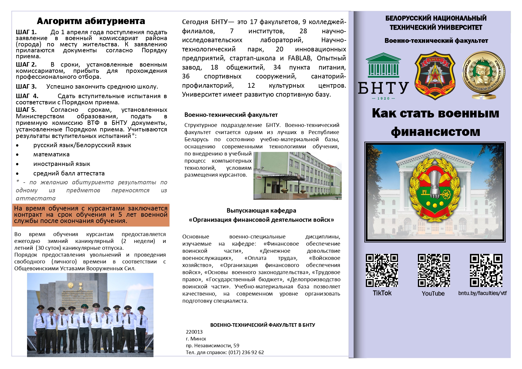 Для поступления на военно-технический факультет в Белорусском национальном техническом университете необходимо сделать следующие шаги: