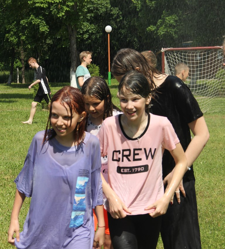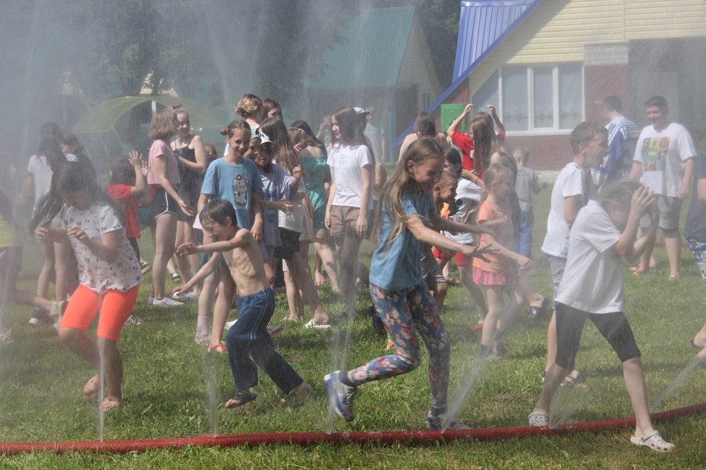 Но, наверное, самым впечатляющим действом для ребят стало обливание водой из брандспойта.