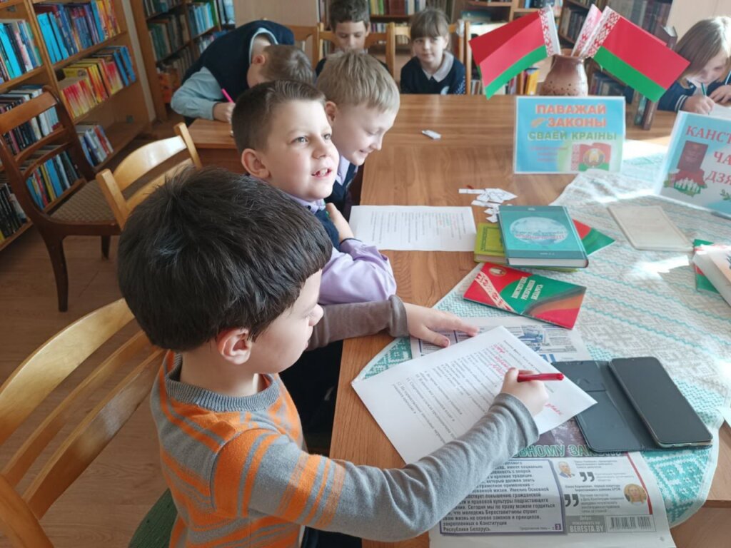 Конституция Республики Беларусь — это гарант защиты своих граждан. Поэтому её нужно знать, а чтобы знать — надо изучать…Гражданско-патриотическое воспитание молодёжи является первоочередной задачей в работе библиотеки. День Конституции Республики Беларусь — это праздник всех, кто гордится своей страной, чтит её историю, кто своим трудом, учёбой, своим талантом вносит вклад в процветание своей Родины. А это наша молодежь, которая принимает активное участие во всех библиотечных мероприятиях, они патриоты своей страны, ведь именно им предстоит строить счастливое будущее нашей Беларуси, а это большая ответственность.