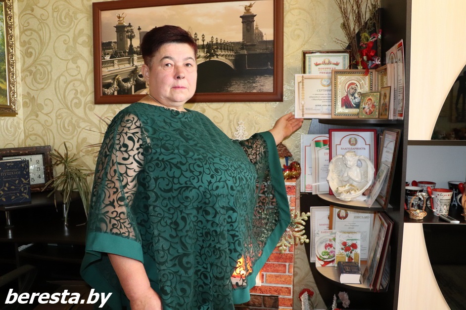 Мы беседуем с Анной Ивановной у нее дома – у женщины сейчас как раз отпуск. На видном месте в комнате у нее целый уголок с наградами за все годы работы в ОАО «Малоберестовицкий элитхоз» – всех грамот, дипломов и благодарственных писем различного уровня просто не перечислишь. С особой гордостью Анна Шлык демонстрирует сертификат о занесении на Доску почета хозяйства.
