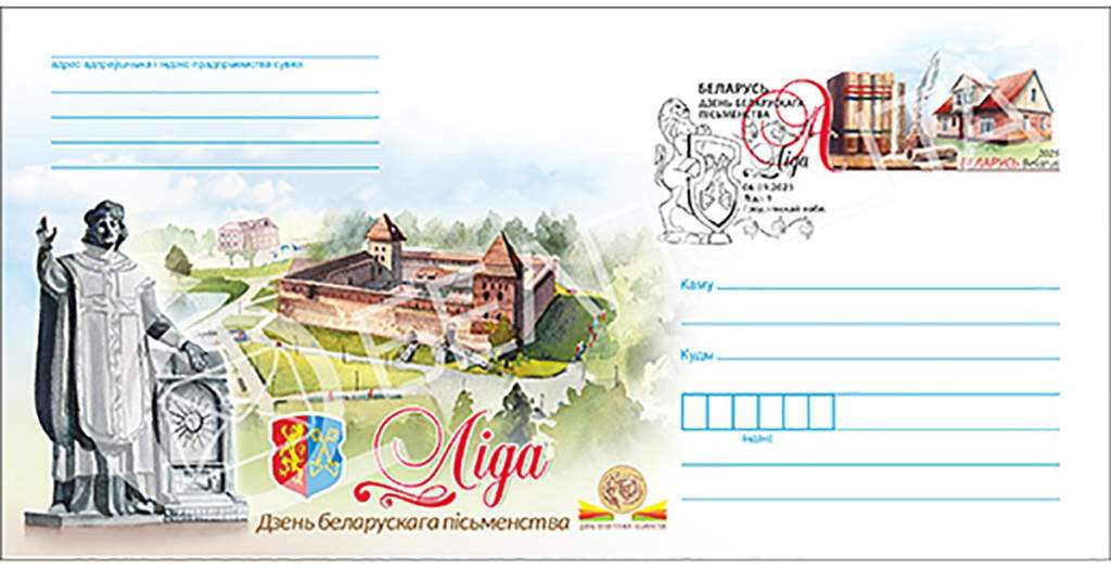 Дизайн конверта включает изображения города Лиды, памятника Франциску Скорине, Лидского замка, эмблема праздника и герба города.