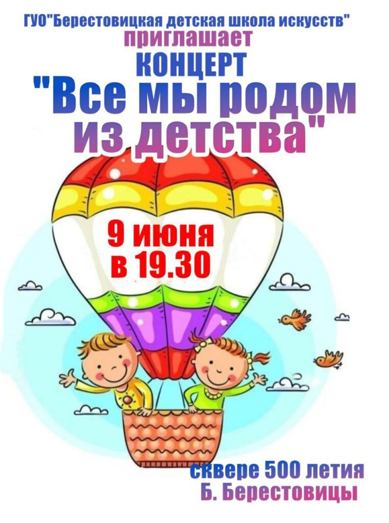 9 июня 2024 года в 19.30 в летнем амфитеатре состоится концерт «Все мы родом из детства» Берестовицкой детской школы искусств.