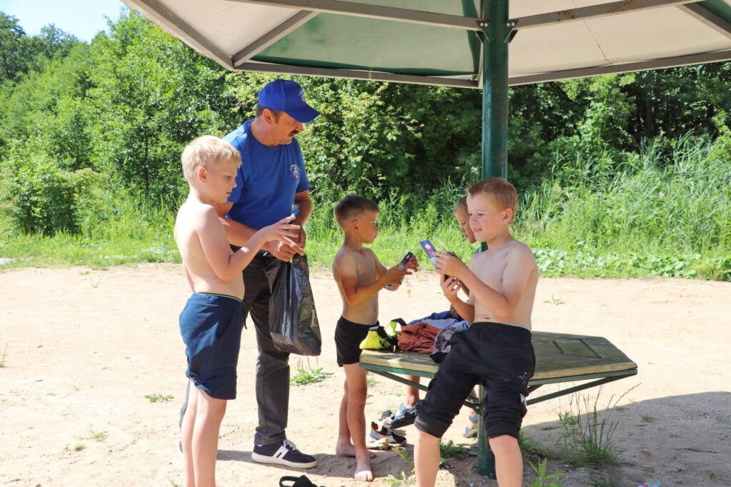 Старший участковый инспектор милиции Владимир Желудок объяснил ребятам, что находиться вблизи водоемов им можно только с родителями или взрослыми, а председатель районной организации ОСВОД Александр Гутовец вручил детям информационные буклеты, напоминающие правила поведения на воде и вблизи ее.