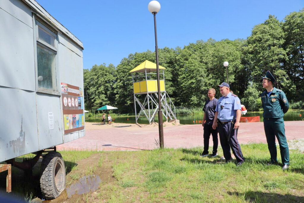 Пляж у пруда в г.п. Большая Берестовица подготовлен к летнему сезону, но ввиду отсутствия матроса-спасателя купаться здесь пока нельзя. Тем не менее, табличек с надписями «Купание запрещено!» члены рейдовой группы у водоема не обнаружили. Зато в непосредственной близости от воды они увидели играющих малолетних детей, которые находись здесь без присмотра взрослых.