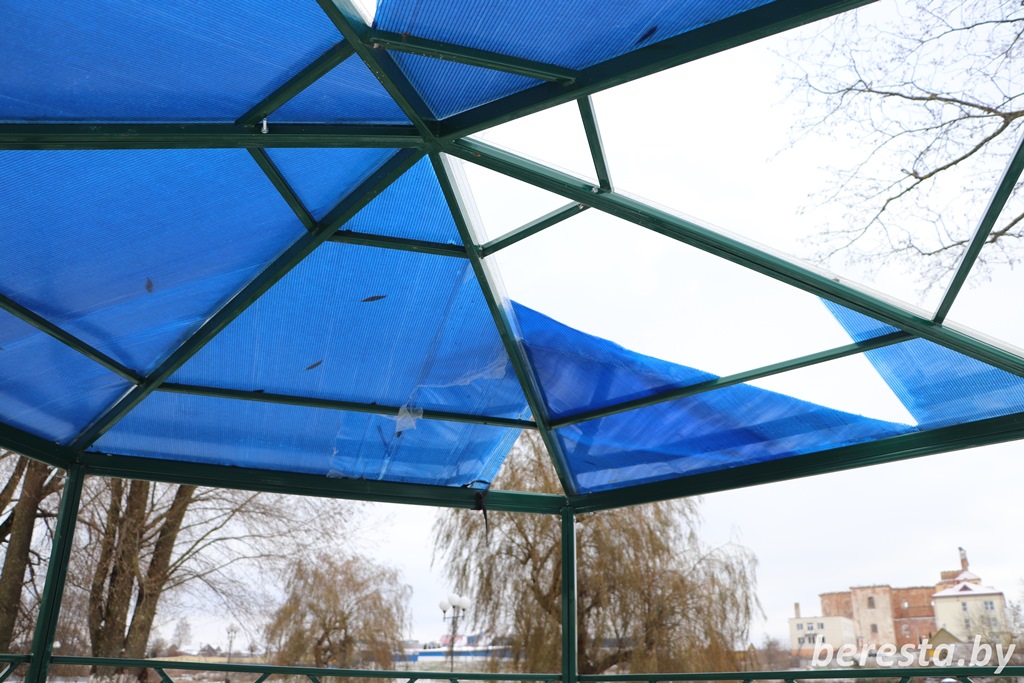 Беседка, которая расположена у моста рядом с рынком, уже практически осталась без крыши, не менее печальный вид и у беседки в парке у больницы, та же ситуация и с беседкой, расположенной у моста за озером. Теперь уже здесь не укроешься от дождя и непогоды, ведь сегменты крыши, сделанные из поликарбоната, местами практически все выломаны. Невозможно посидеть и передохнуть на мокрых и грязных скамейках, затоптанных ногами. Получается, то, что делалось для удобства всех жителей и гостей райцентра, на наши с вами деньги, как налогоплательщиков, без зазрения совести уничтожается хулиганами.