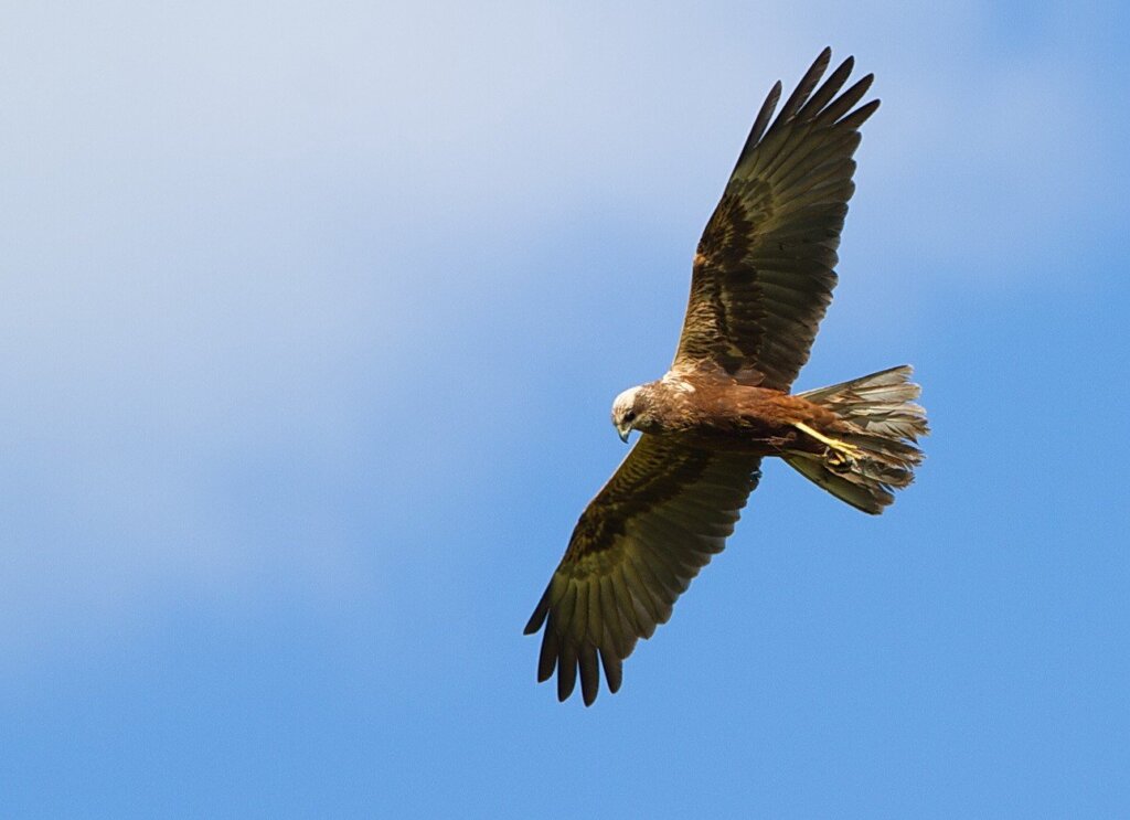 Болотный лунь — довольно распространенный в Беларуси хищник. Даже издалека луней можно узнать по характерному силуэту, самой заметной частью которого являются длинные и относительно узкие крылья (хотя есть и исключения). Несмотря на свое название, представители этого вида гнездятся у любой воды, если там есть густые заросли тростника, рогозы или другой растительности, среди которой болотные луни устраивают свое гнездо. Но охотиться они предпочитают на лугах, полях и других открытых пространствах.