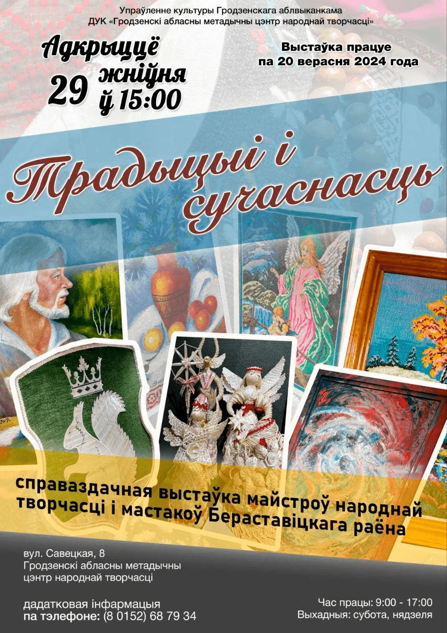 Даведацца пра гісторыю, сучасны стан, мастацкія асаблівасці і лакальныя адметнасці традыцыйнай культуры і сучаснага мастацтва на Бераставіччыне можна будзе ўсім наведвальнікам справаздачнай выстаўкі майстроў народнай творчасці і мастакоў Бераставіцкага раёна «Традыцыі і сучаснасць».