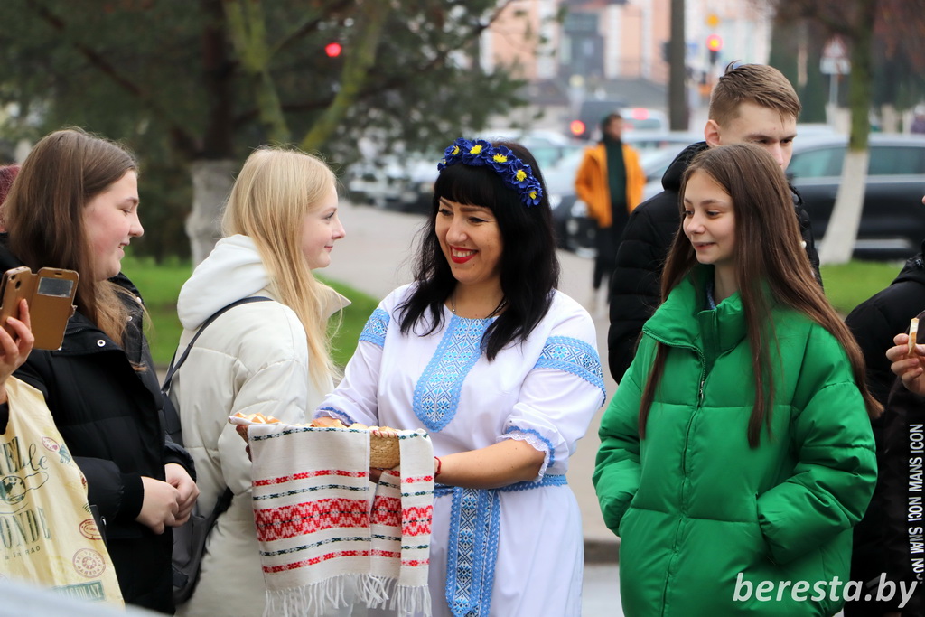 Пад прывітальныя песні народнага ансамбля народнай песні “Бераставіцкія музыкі” гасцей этна-фэсту сустрэлі на парозе Дома культуры менавіта хлебам-соллю. І яны з энтузіязмам прынялі пачастунак. А яшчэ даведаліся, што хлеб з соллю выкарыстоўваўся і для блаславення. Напрыклад, падчас вяселля ці провадаў у дарогу.