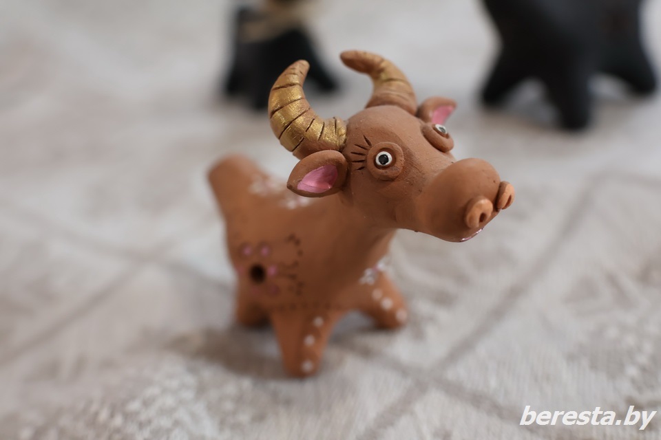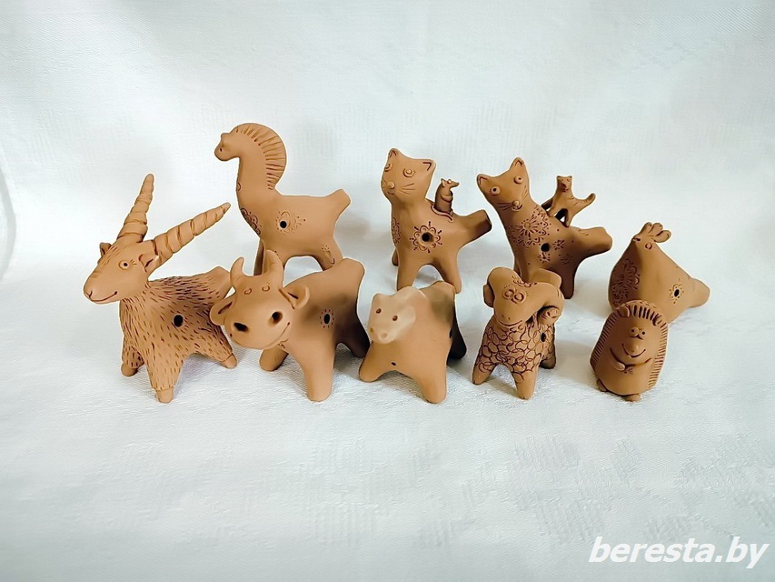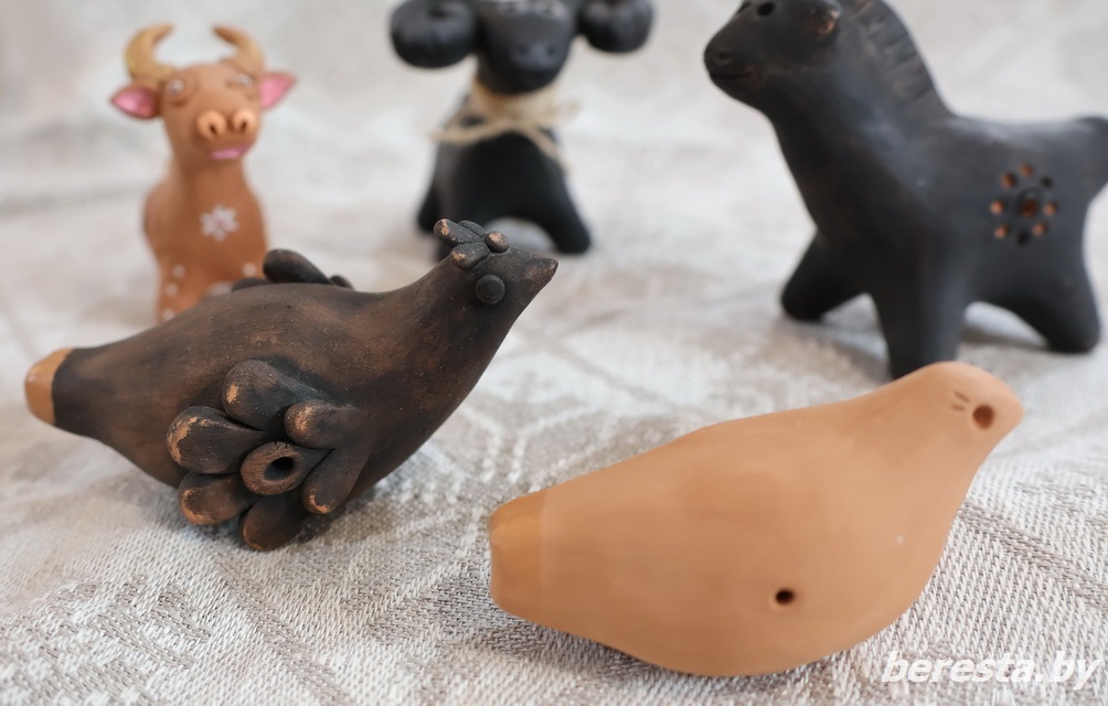 Мастер бережно хранит традиции белорусской керамики, делает замечательные свистульки в виде птичек и зверушек. Особое место в коллекции свистулек занимает буренка. Смотришь на нее, а она удивленно на тебя, кажется, что вот-вот побежит! И каждая – единственная в своем роде, повторить «красавицу» точь-в-точь не получится, как ни старайся.