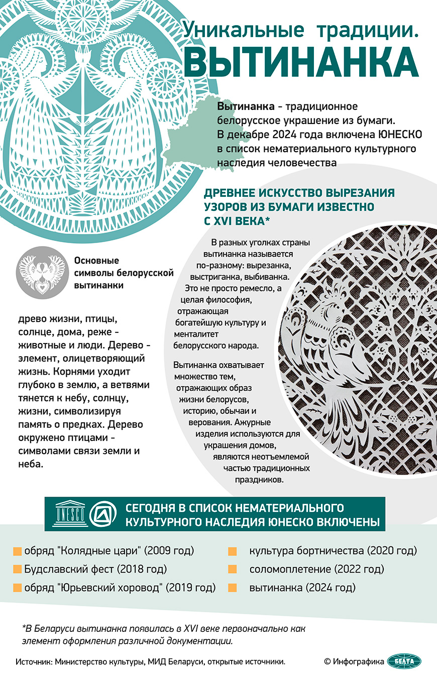На мероприятии сертификат о включении белорусского элемента нематериального культурного наследия «Вытинанка — традиционное искусство вырезания из бумаги» в Репрезентативный список нематериального культурного наследия человечества вручили мастерам вытинанки Юлии Каврус из Гомельской области, Наталье Кулецкой из Брестской и Елизавете Червонцевой из Минской.
