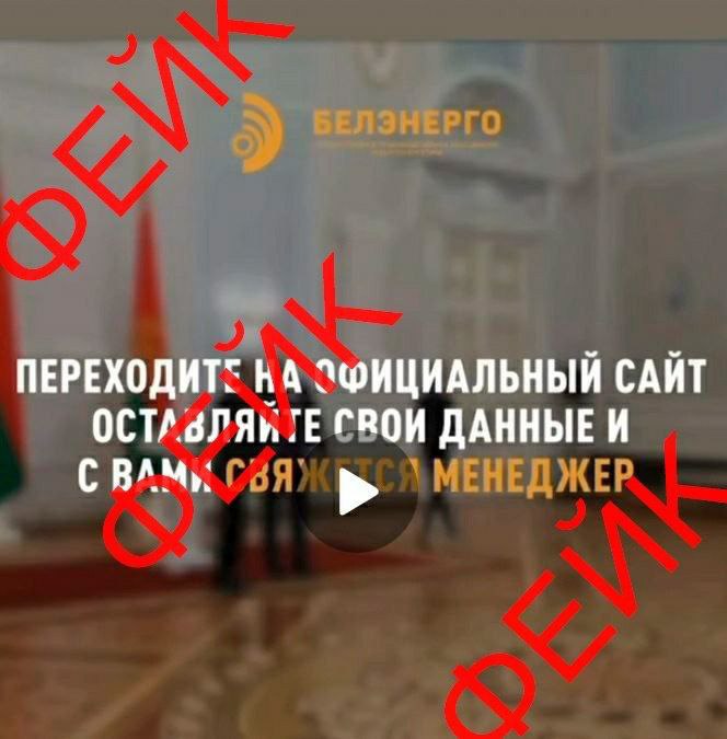 Белэнерго: «В социальных сетях появилась фейковая реклама, в которой упоминается ГПО „Белэнерго“ с отсылкой к некому государственному проекту с указанием фейковой ссылки на сайт мошенников. Убедительная просьба не переходить по ссылке, не предоставлять свои персональные данные».