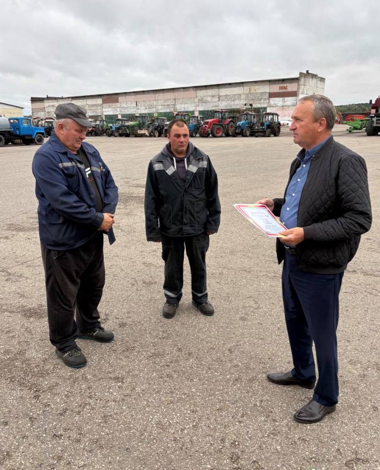 Владимир Онищик посетил все хозяйства района и вручил заслуженные награды победителям районного соревнования на заготовке кормов. Денежными премиями от первичных профсоюзных организаций были награждены также лидеры кормозаготовительной кампании в своих хозяйствах.