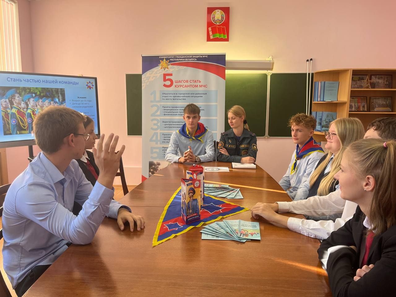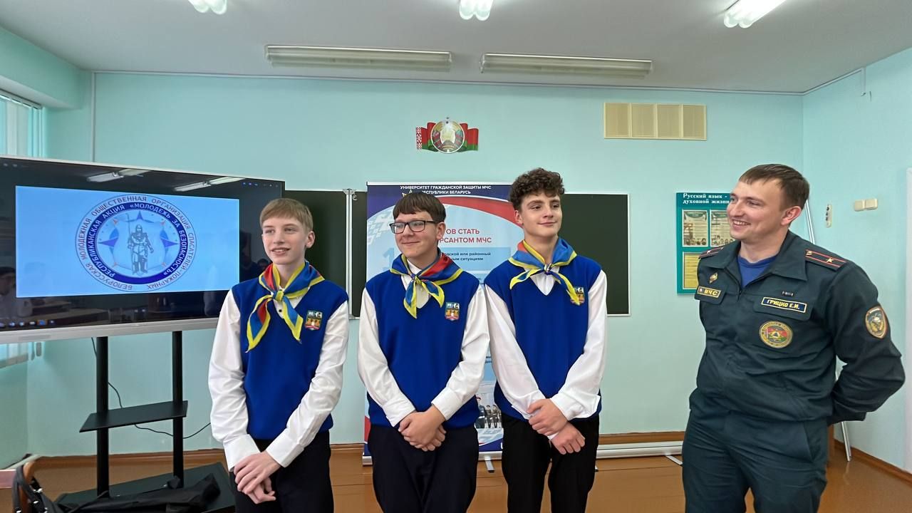 Представители службы 101 разъяснили школьникам, чем занимается Белорусская молодежная общественная организация спасателей-пожарных и как в нее вступить. Активисты организации рассказали об интересных мероприятиях, в которых можно принять участие.