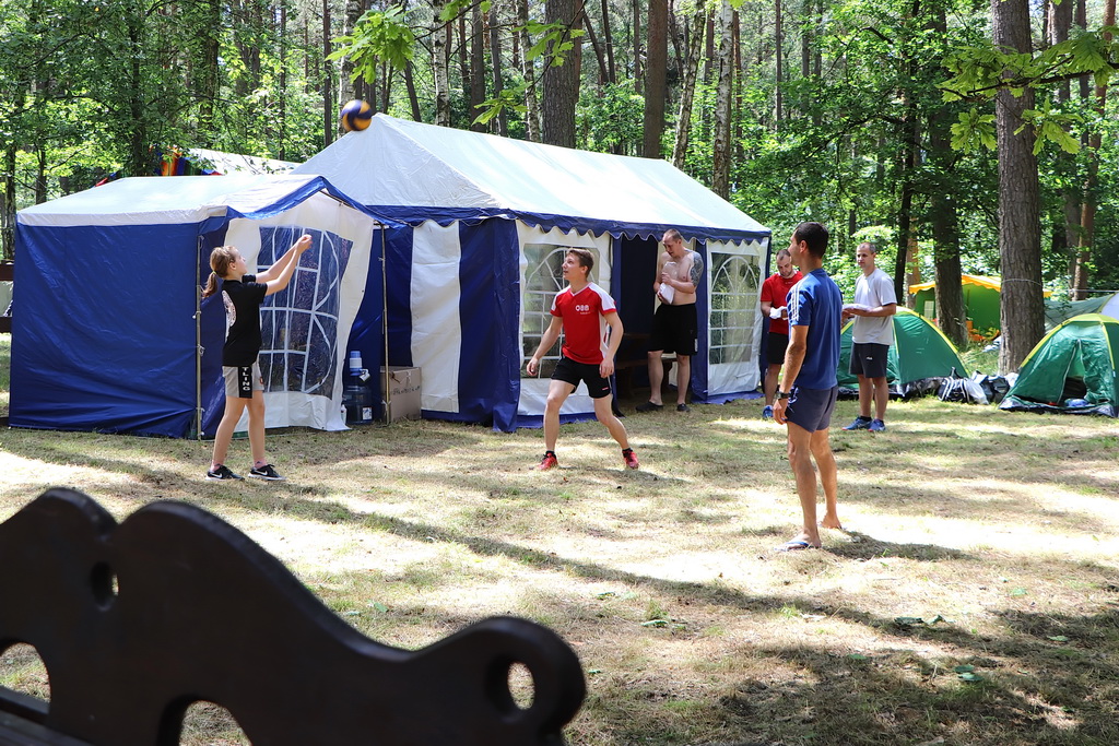 Сегодня состоялись соревнования по волейболу и дартсу, вечером – конкурсы визитных карточек команд и быта туриста.