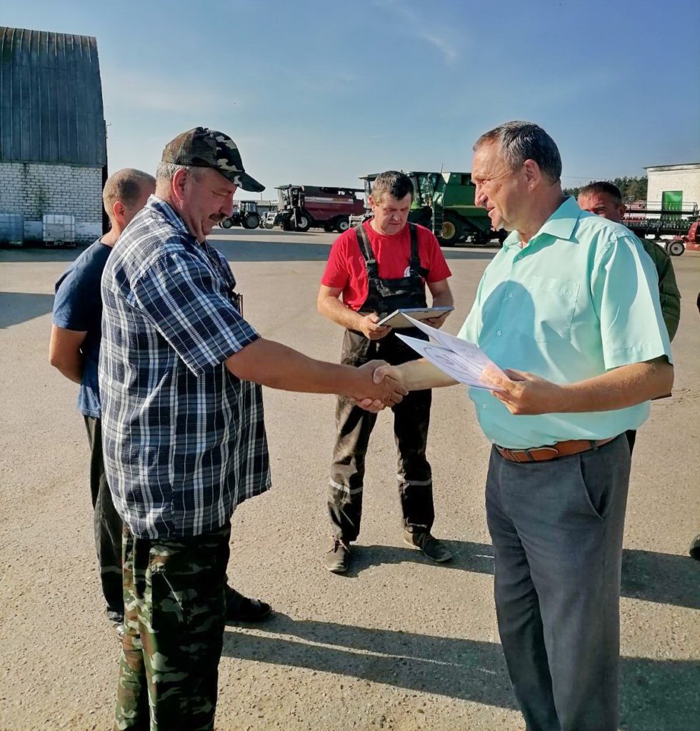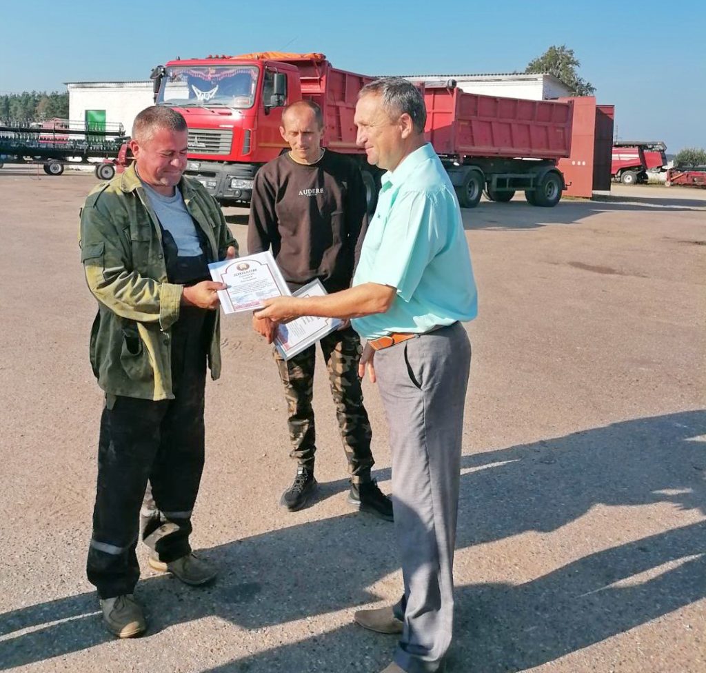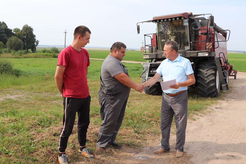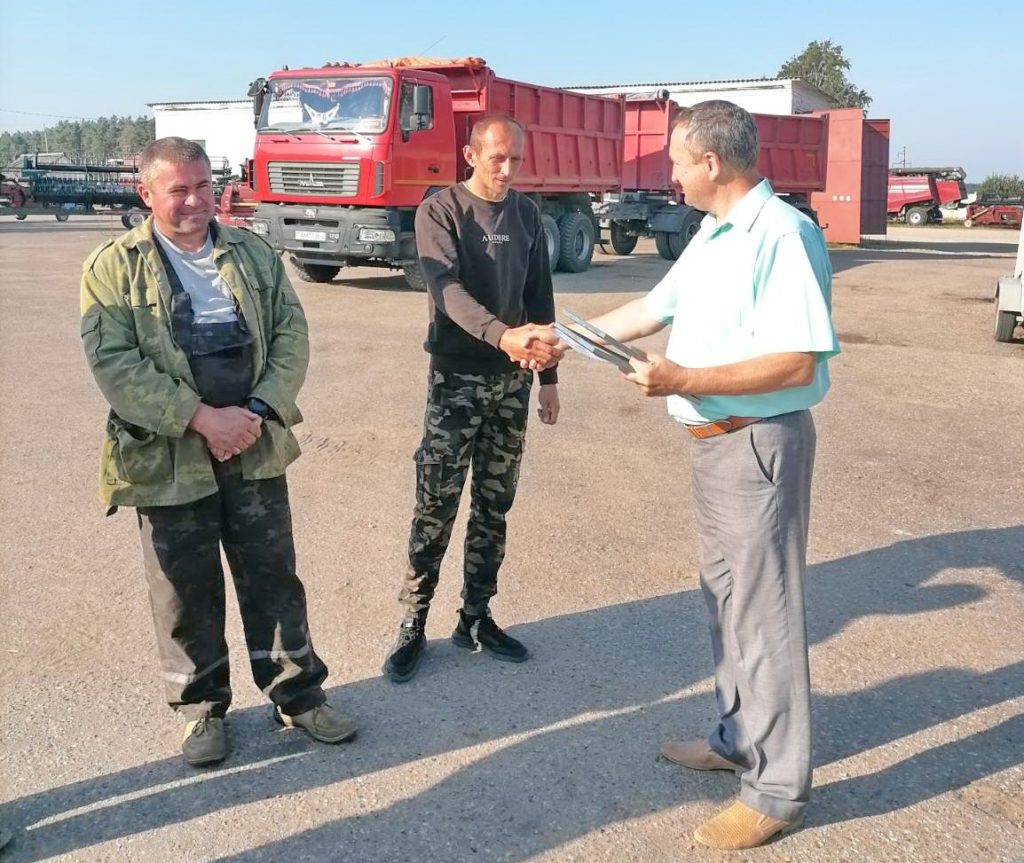 а также экипаж в составе старшего комбайнера Андрея Иодковского и комбайнера Валерия Попова, тоже из КСУП «Воронецкий»