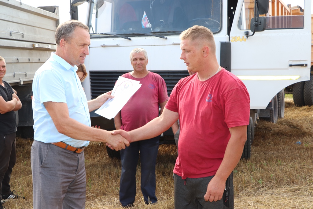 16 августа в Берестовицком районе прошло чествование победителей районного соревнования на уборке зерновых и зернобобовых культур по итогам минувшей недели. Председатель Берестовицкого райкома профсоюза работников агропромышленного комплекса Владимир Онищик вручил передовикам жатвы заслуженные награды прямо в поле.