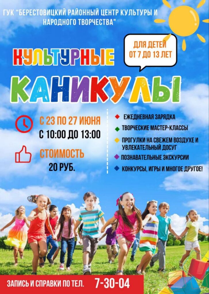 С 23 по 27 июня на Берестовитчине пройдет проект «Культурные каникулы» при участии районного центра культуры и народного творчества, райбиблиотеки и музея Белки.