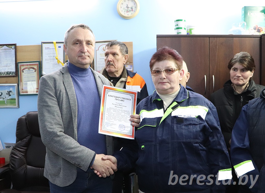 В СУП «МилкАгро» Благодарственные письма и денежные премии от профсоюза получили операторы животноводческих комплексов Наталья Киселева, Ирина Дрыгина, Николай Пашинский, животноводы Анжела Мазурек, Виктор Костецкий, Галина Мицкевич, Евгений Гребенков, Ирина Болбат, Сергей Межеленский и Сергей Конецкий.