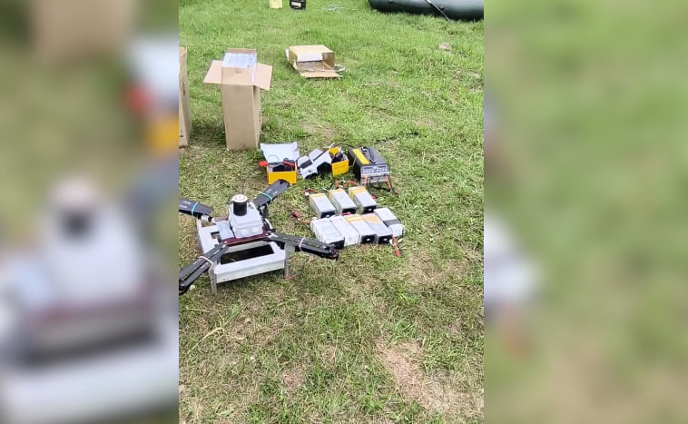 Как сообщили в ГПК, при осмотре построек изъяты беспилотник и пульт управления к нему, 8 аккумуляторных батарей, зарядная станция и GPS-трекер.
