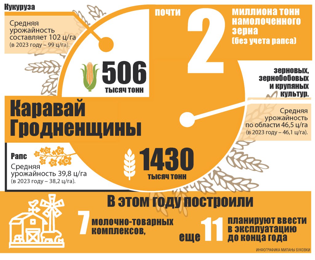 Средняя урожайность этих культур составила 46,5 ц/га. В лидерах по урожайности оказались Гродненский район – 75 ц/га, Берестовицкий – 63,6 ц/га и Кореличский – 57,8 ц/га.