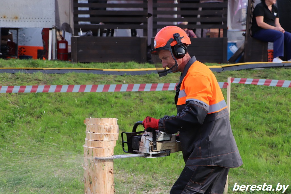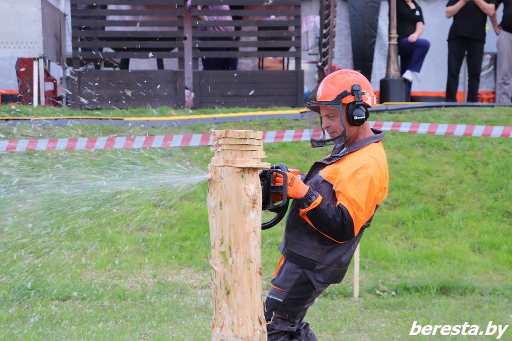 Настоящие профессионалы своего дела продемонстрировали уверенное владение бензопилой.