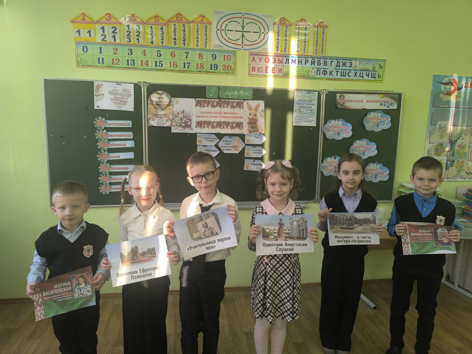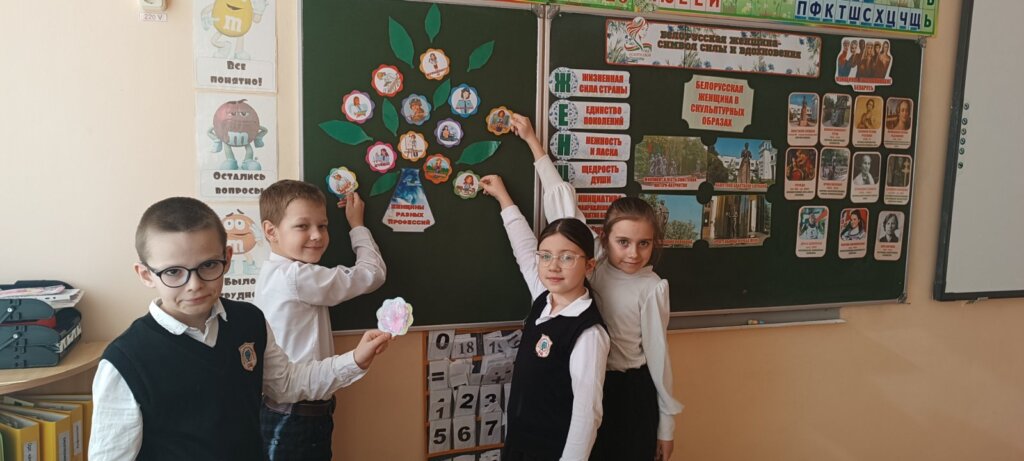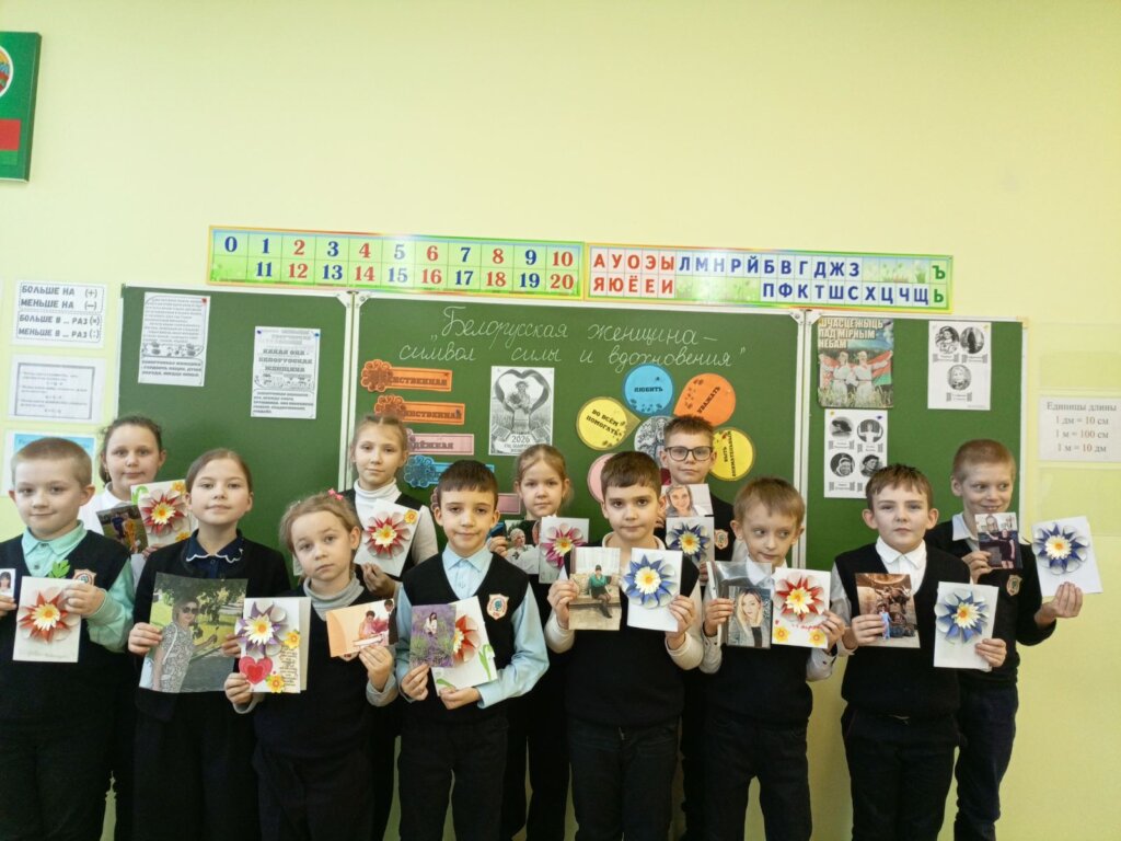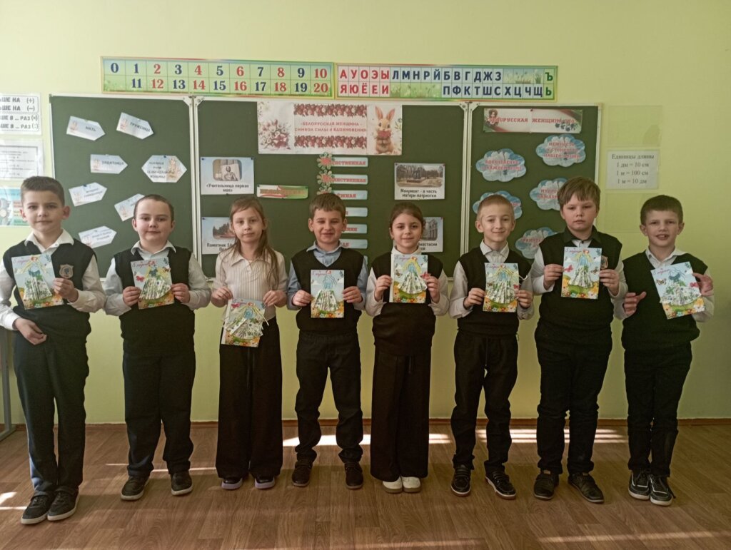 Ребята начальной школы назвали имена женщин, прославивших Республику Беларусь, а также малую родину – Большую Берестовицу. Младшие школьники поделились счастливыми моментами с любимой мамой, запечатлёнными на фотоснимках, а также создали своими руками яркие поздравительные открытки.