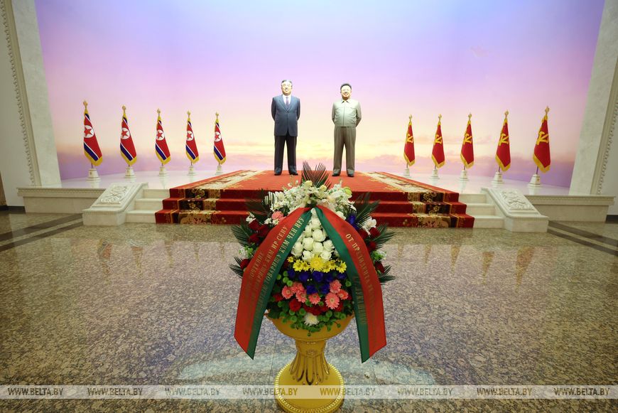 Александр Лукашенко по прибытии в Пхеньян посетил Кымсусанский дворец Солнца и почтил память корейских вождей