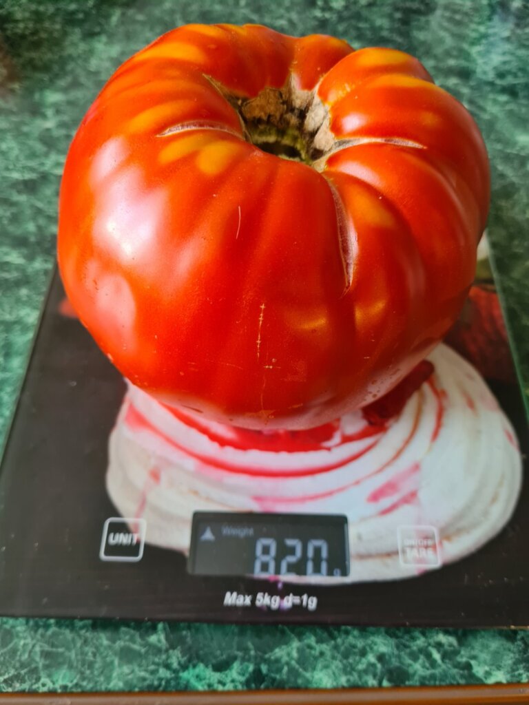 Пора сбора урожая из года в год приносит огородникам и садоводам немало приятных сюрпризов. Особенно радуют их плоды, которые по своим размерам и весу значительно превышают средние показатели. Эти естественные «великаны» становятся настоящим предметом гордости и восхищения. Мы уже писали о помидоре весом в 798 г, который вырастила жительница агрогородка Старый Дворец Ирина Рыгосик. И вот новый рекорд – помидор-гигант весом 820 граммов созрел на частном подворье жителя агрогородка Пархимовцы Владимира Онищика.